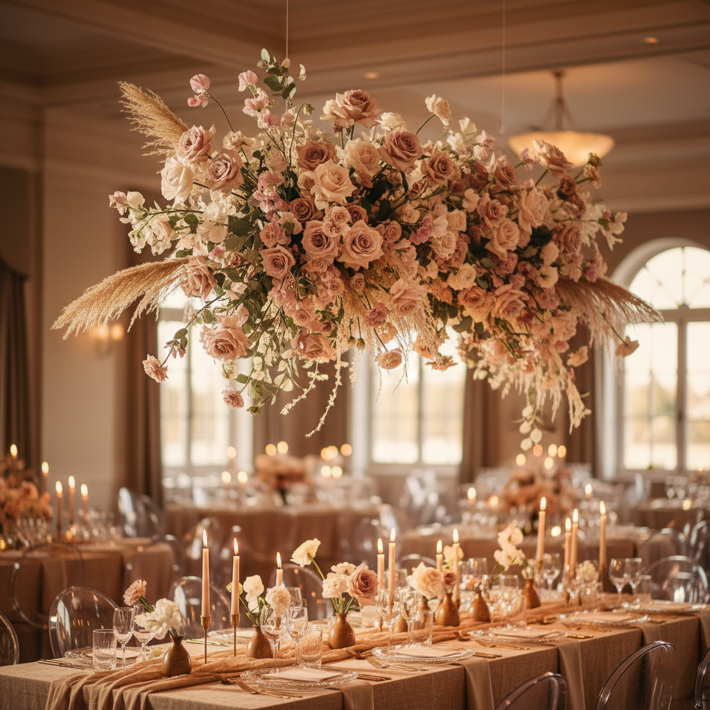 Floral design is custom-quoted based on bloom selection, design scale, season, and installation needs. Most floral design projects begin around $2,500–$3,000, with full-scale event florals starting higher depending on scope.