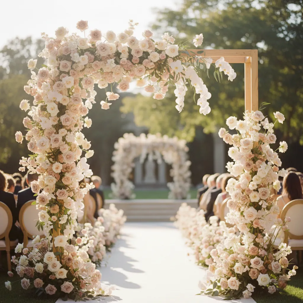 Bouquets, boutonnieres, ceremony florals, centerpieces, sweetheart table styling, arches & statement installations — curated to feel elegant, feminine, and worthy of such a meaningful milestone celebration.